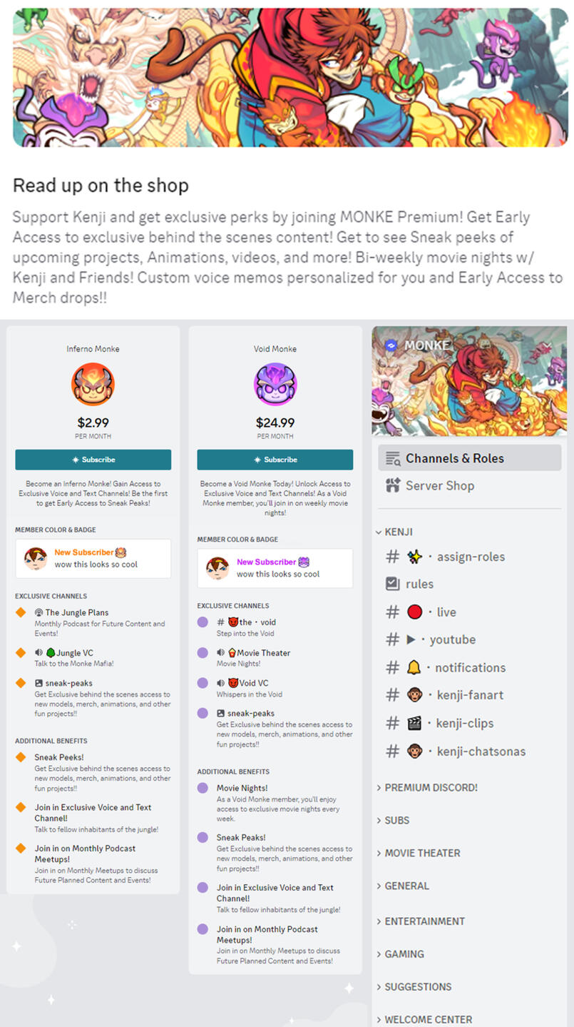Subscriber Perks: Unlock exclusive voice and text channels by subscribing, where you can chat directly with Kenji and other members in a more private setting.
